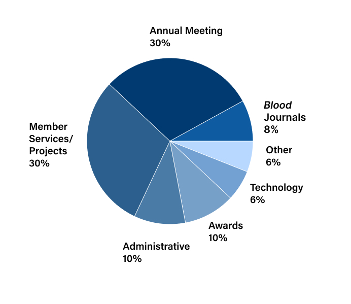 Thoughtful financial stewardship allowed the Society to support more hematologists in the face of federal cuts to scientific research, using funding from ASH reserves. The figures below represent revenue and expenses from the operating budget for fiscal year 2025 (July 2024-June 2025).